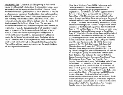 Dena Kenny Solan, Sharon, Class of 1973, Soccer, Softball