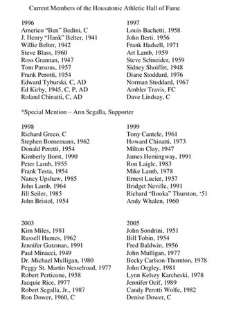 of Fame held alternating years with the HVRHS Wall of Honor. The Hall of Fame, which